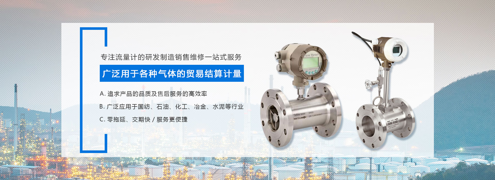 專職工程師深入現場,與客戶技術溝通,針對不同工況、工藝要求量身定制智能儀表確保客戶購買的流量計產品得到成套解決方案。